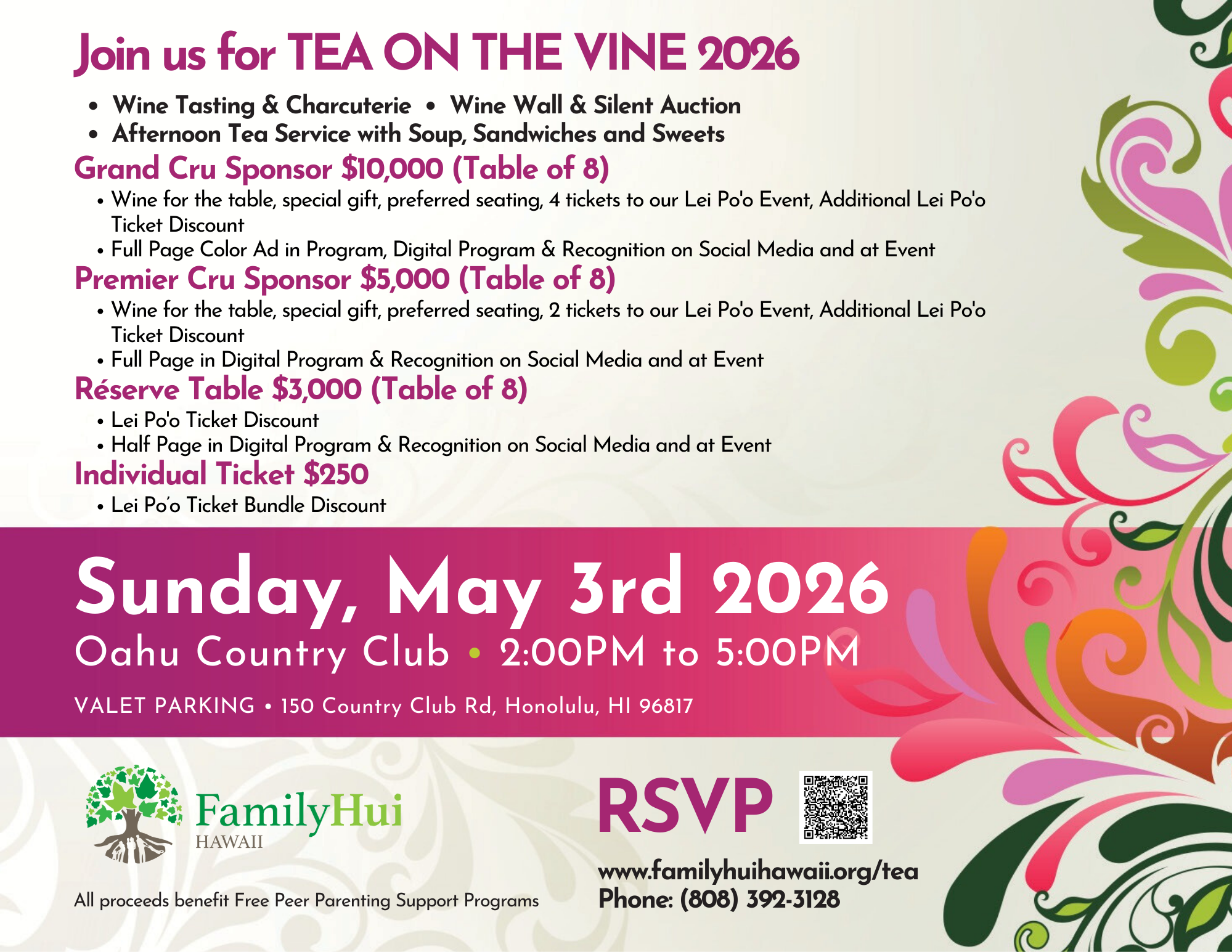 You can support Family Hui Hawaii if you can’t make it to our Tea on the Vine event! You can make a donation through our website or provide an item for our Silent Auction!